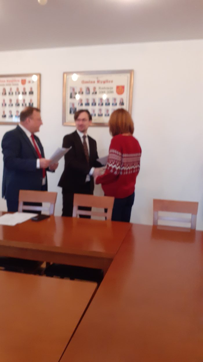 Pan Piotr Łosiński wręczył również dyplomy pracownikom Urzędu Miejskiego w Ryglicach, którzy ukończyli obowiązkowe szkolenie z zakresu ochrony ludności i obrony cywilnej.