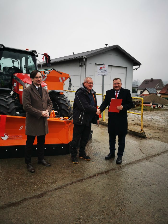 W dniu dzisiejszym Gminę Ryglice odwiedził Pan Piotr Łosiński, Kierownik Delegatury Małopolskiego Urzędu Wojewódzkiego w Tarnowie, który w imieniu Wojewody Małopolskiego Krzysztofa Jana Klęczara oficjalnie przekazał do użytku ciągnik wraz z osprzętem zimowym.
