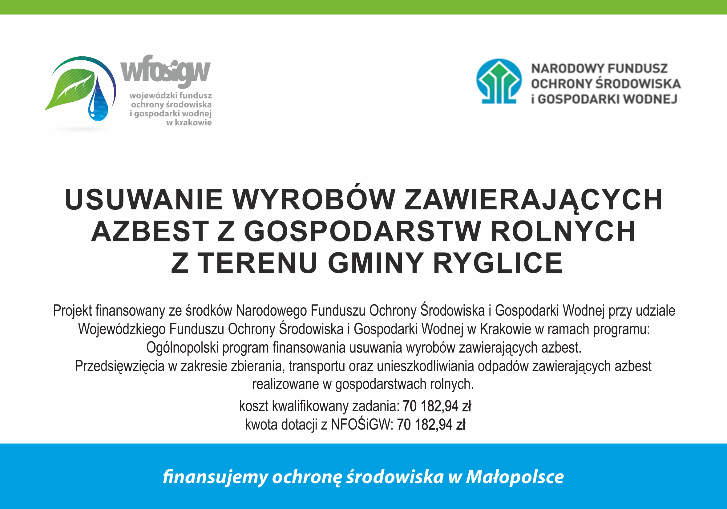 - prowadzenie punktu obsługi mieszkańców. Punkt zlokalizowany będzie w budynku Urzędu Gminy Ryglice. W ramach projektu planowany jest także zakup wyposażenia do punktu obsługi mieszkańców,
