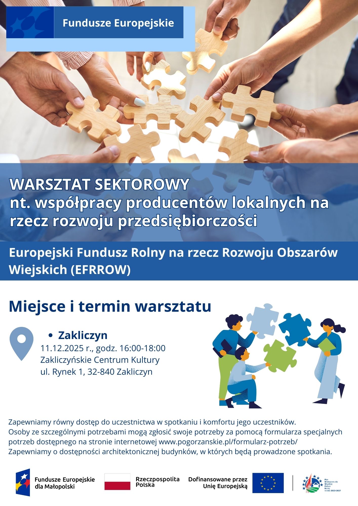 - Gmina Zakliczyn – 11.12.2025 r. godz. 16:00-18:00, Zakliczyńskie Centrum Kultury, ul. Rynek 1, 32-840 Zakliczyn